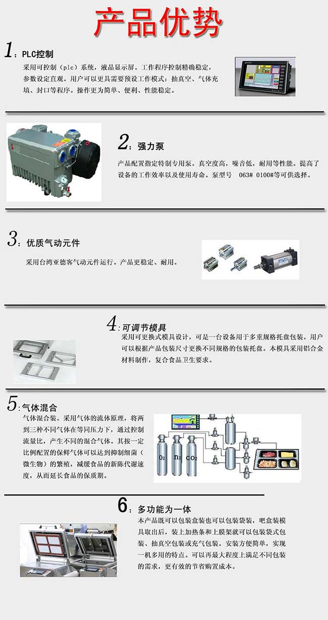 1. 本公司針對連鎖店、超市、專賣店、實(shí)驗(yàn)室、小型食品生產(chǎn)企業(yè)等推出的一款突破性設(shè)計(jì)真理氣調(diào)保鮮包裝機(jī)。