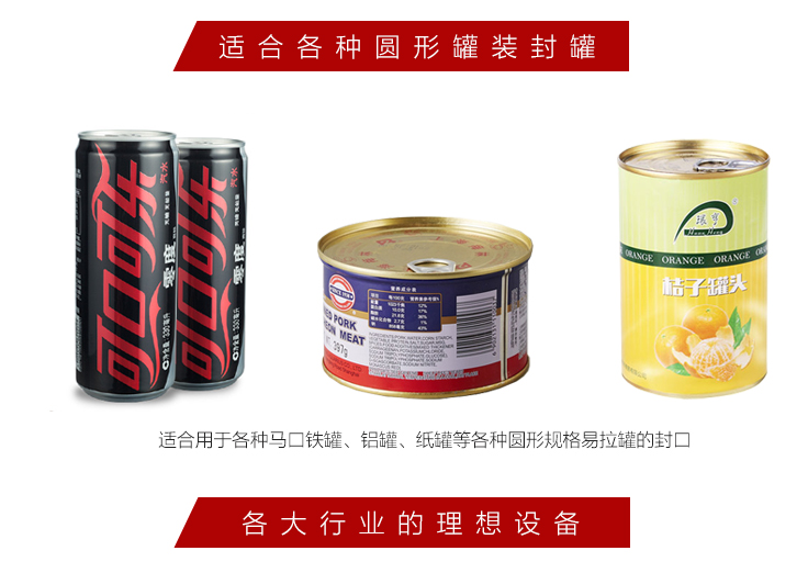 4、適用于各種馬口鐵罐、鋁合金罐、紙罐等各種圓形規(guī)格易拉罐的封口,操作簡單易學(xué),是食品、飲料、制藥等行業(yè)的理想設(shè)備